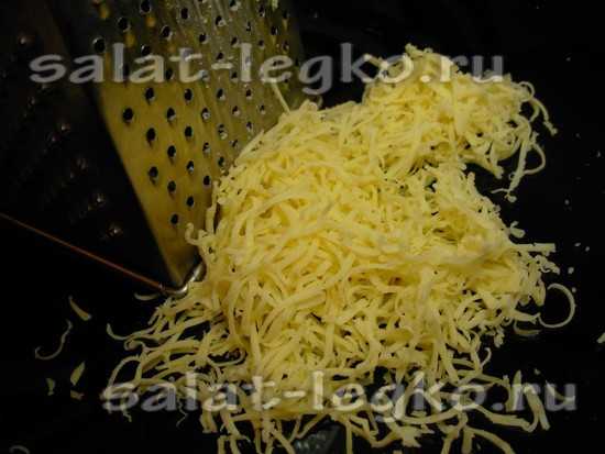 Сыр трем на терке. Для этого салата лучше подойдет терка с мелкими ячейками.