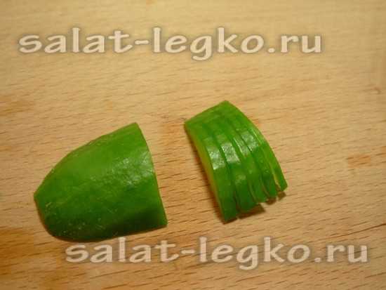 Нарезаем оставшийся огурец тонкими полукольцами.
