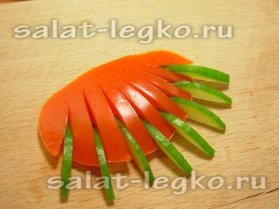 То же самое проделываем со сладким желтым перцем и дольками огурца.
