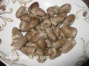 - вареные куриные сердечки – 550 г