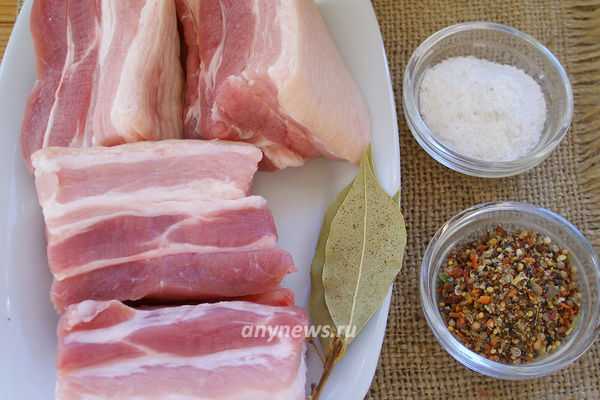 - 1-1,5 кг сала или мясной грудинки, выбирайте то, что больше по вкусу;