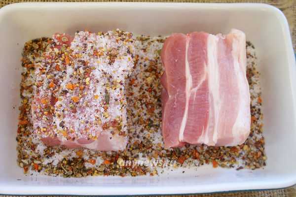 Каждый из кусочков хорошенько натереть смесью соли и черного молотого перца.