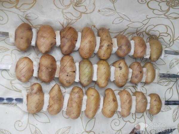 Шашлык с картошкой в нашей семье очень любят, тем более готовиться всё легко и просто, хорошее дополнение к мясному шашлыку.