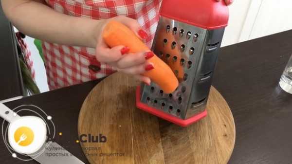 - Почистить и потереть на крупной тёрке 4 моркови.