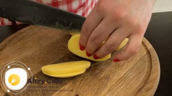 - Почистить и порезать тонкими кольцами 10 картофелин (не крупно, так как рыба готовится быстро).