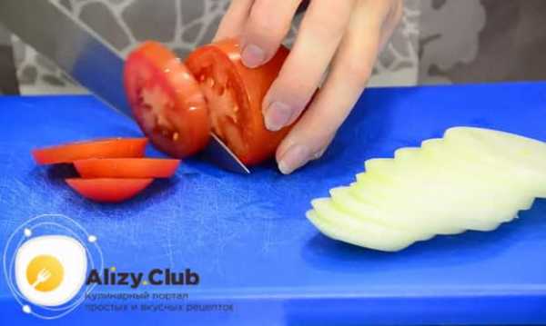 - Почистить и нарезать тонко полукольцами 4 луковицы.