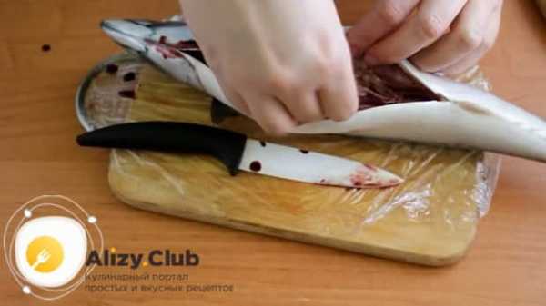 - У рыбы удалить внутренности, снять темную пленочку, промыть. Просушить салфеткой.