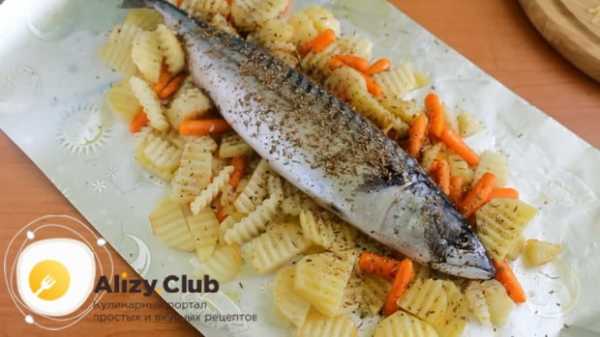 Скумбрия, запечённая в духовке с морковкой и картошкой