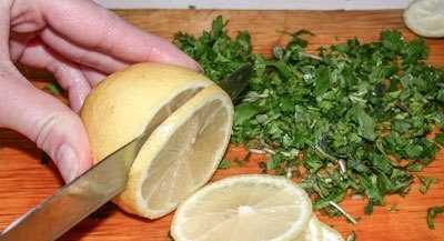 - Порезать полукольцами 1 лимон, из второго лимона выдавить сок.