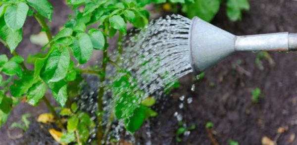 Елизавета предпочитает регулярный, но дозированный полив. Она одинаково негативно реагирует как на чрезмерное увлажнение, так и на недостаток влаги. Первые мероприятия по орошению осуществляют непосредственно после высадки корнеплодов. Второй полив проводят, когда ростки достигнут высоты в 5–10 см. Далее количество увлажнений будет зависеть от погодных условий: при жаркой, сухой погоде рекомендуется поливать кусты каждые 5 дней, при нормальных температурных показателях — один раз в 10 дней.