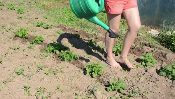 - Второй раз картошку поливают сразу после появления соцветий.