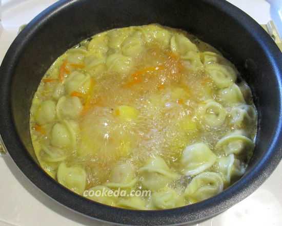 С момента их всплытия варите 5—10 минут. Если бульон будет сильно кипеть, то варку продолжите с открытой крышкой.