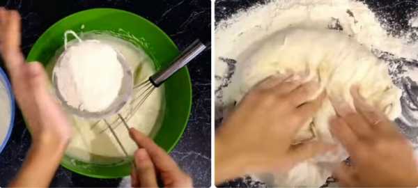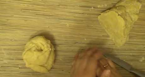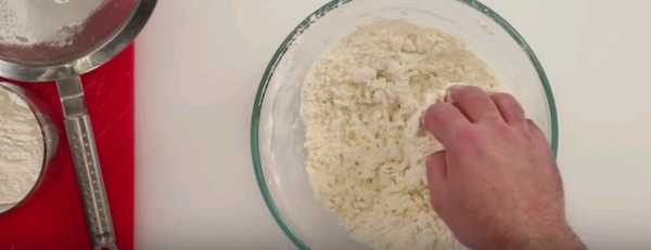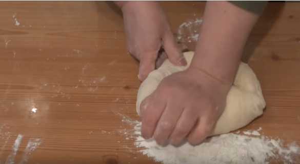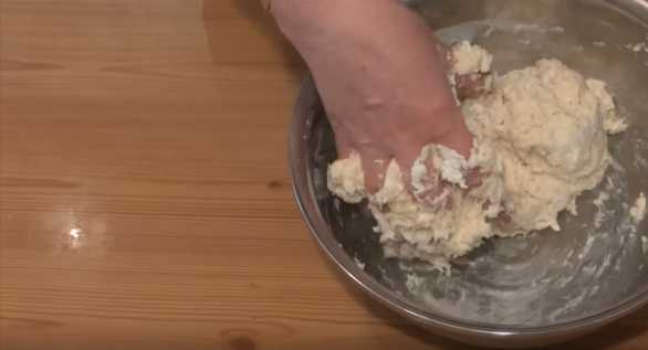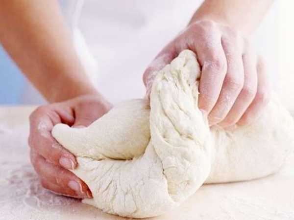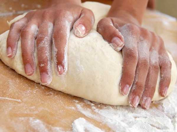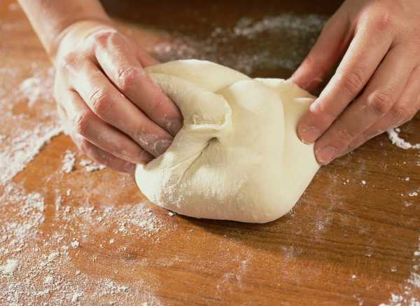 Вымешивать тесто надо до однородного состояния, а чтобы это было делать удобнее, легче и не так утомительно рукам — можно разрезать его на части поменьше, ведь маленькие комочки замешивать гораздо удобнее, чем один большой.