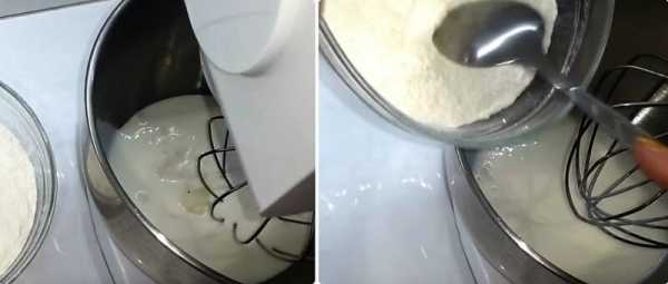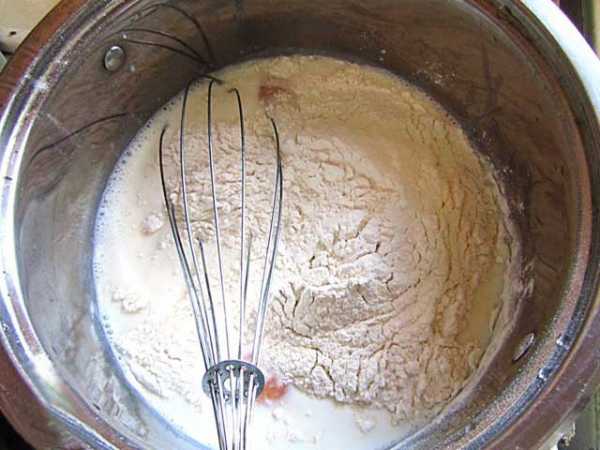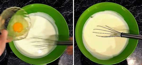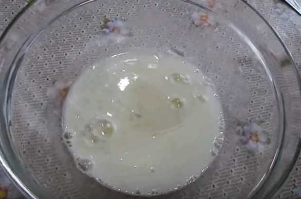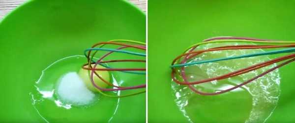 Перемешиваем венчиком и видим, как масса сразу начинает пенится:
