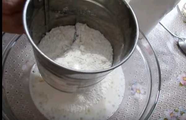 Далее 4 стакана (с такой же вместимостью) муки, просеем через сито.