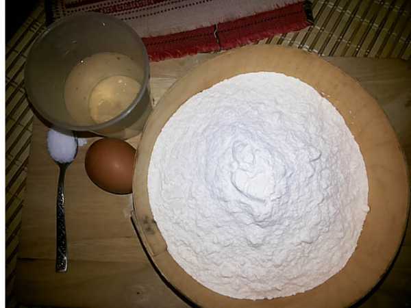 Если вы боитесь ошибиться с пропорциями — тогда возьмите просто 600 гр. муки и 280-290 мл жидкости. Жидкость — это вода, яйца и масло вместе взятые. Если яйца слишком мелкие — недостаток жидкости компенсируйте водой. Иначе у вас получится очень крутое тесто.